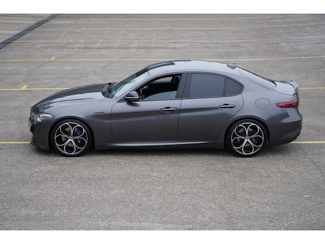 Prachtige Giulia Veloce Q4 in Grigio Metallico met zwart lederen sportstoelen. Heel mooi uitgevoerd met privacy glass vanaf de B-stijl, schakelflippers aan het stuurwiel, 19 inch Giulia velgen in aluminium / grijs, sport onderstel, veel mooie carbon details en het brede 8,8 inch navigatie display met geintegreerde telefoon en achteruit-rij camera. De 2.0 Turbo motor levert 280PK en is gekoppeld aan de 8-traps automaat. De Veloce Q4 uitvoering is vierwiel aangedreven. Super onderhouden en een waanzinnige auto om mee te rijden. Kijk voor alle info op www.samvandalen.com