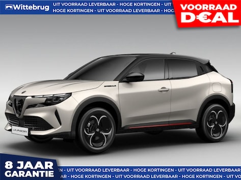 Dat jij het milieu wilt sparen, wil nog niet zeggen dat je aan rijcomfort moet inleveren. De Alfa Romeo Junior is een comfortabele en ruime hybride auto. Je kunt deze nieuwe auto nu direct verkrijgen, want hij is op voorraad. Onder de motorkap een elektromotor en een verbrandingsmotor. Veel duurzame kilometers dus! Er is een rijke uitrusting aanwezig in deze auto, waar onder meer ook stoelverwarming bij hoort. Een praktische extra is de elektrisch bedienbare achterklep die opent en sluit met een druk op de knop. Met het grote glazen panoramadak voelt het alsof u in een cabrio zit. De koplampen met matrix LED-verlichting geven daglichtkwaliteit zonder tegenliggers te hinderen. Bij de uitrusting van deze auto horen onder meer halflederen bekleding, donker getint glas achter, in delen neerklapbare achterbank en LED-achterlichten.