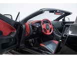 The Q by Aston Martin content takes this Vanquish Volante to a higher level, with numerous red-tinted exposed carbon fibre elements such as the bonnet, front splitter, side strakes, mirror caps, and rear diffuser. Even the tonneau cover and paddle shifters are finished in this exclusive carbon treatment. Machined carbon fibre sill plaques and AM wings badges complete the highly customised package.