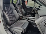 Betreft het interieur zien we gelijk de rode RS stiksels, rode 12 uur markering op het alcantara stuurwiel en elektrische verstelbare voorstoelen met stoelverwarming en stoelmassage!
