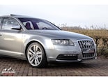 Te koop aangeboden een bijzonder mooie en zeer verzorgde Audi S6 V10 5.2 sedan, uitgevoerd in stijlvol lichtgrijs metallic en gecombineerd met een exclusief ivoren lederen/alcantara interieur. Deze samenstelling geeft de auto een luxe en tijdloze uitstraling, perfect passend bij het karakter van deze krachtige sportsedan.