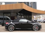 Nette, perfect onderhouden en rijk uitgeruste Audi TT Roadster 2.0 TFSI TTS quattro Pro Line + uit 2016. Deze 310pk sterke cabrio is o.a. voorzien van: AppleCarplay/AndroidAuto, softtop, nekverwarming, stoelverwarming, DAB, keyless, Bang & Olufsen Sound System, lane assist, elektrisch verstelbare voorstoel(en), LED koplampen en S-Line pakket. Uitgevoerd in zwart metallic met rood lederen sportinterieur.