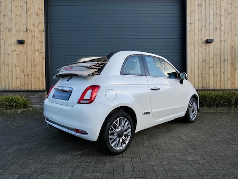 Fiat 500c 1.2 Lounge cabrio nieuw model 2016. In de gewilde parelmoer witte kleur met creme dak en vol leder interieur, navigatie scherm, airco, digitaal dashboard, elek kap, unieke combi etc Deze Fiat verkeerd in goed onderhouden staat! Onderhoudshistorie en 2 sleutels aanwezig.