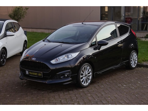 Wat een prachtige Ford Fiesta Sport. Metallic zwarte lak, rode interieuraccenten en een compleet sportpakket met lip, skirts, diffuser en spoiler. Ook staat hij op 16‑inch lichtmetalen velgen en is hij af‑fabriek verlaagd.