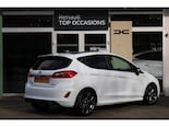 Bij de bouw van de Ford Fiesta wordt niets aan het toeval overgelaten. Vandaar dat hier een auto staat die in optimale conditie verkeert. In deze auto vindt u een benzinemotor en een automatische transmissie. Ga samen met uw bijrijder lekker zitten in de verwarmbare voorstoelen. Ziet er goed uit, die sportstoelen. Maar waar het om gaat, is de solide zit onder alle omstandigheden. Als u blij wordt van licht en ruimte dan zult u zeker genieten van het elektrisch bediende panoramadak. Al is het nog zo fris, koude handen zijn verleden tijd door het verwarmd stuurwiel. Ook is de auto voorzien van: 17 inch lichtmetalen velgen, Full LED koplampen, sportonderstel, donker getint glas achter, in delen neerklapbare achterbank en LED-achterlichten.