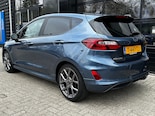 Rijden in een Ford betekent toekomstgericht de weg op gaan. Een stapje meer doen, de voorsprong pakken. Go Further, zoals ze zelf zeggen. De 125 PK krachtige benzinemotor van deze auto is gekoppeld aan een handgeschakelde zesversnellingsbak. Lekker hoor, die verwarmbare voorstoelen. Helemaal op koude dagen. In deze sportstoelen voel je je één met je auto. Hoe koud het buiten ook is, het verwarmbare stuurwiel brengt uw handen en vingers snel weer op temperatuur. U wordt in deze auto ook getrakteerd op 17 inch lichtmetalen velgen, LED koplampen, sportonderstel, extra getint glas, in delen neerklapbare achterbank en LED-achterlichten. Geen nekkramp of spiegelwerk meer bij het achteruitrijden: de achteruitrijcamera kijkt en ziet alles! Een veiligheidsverhogende optie is de ingebouwde spraakbediening. Terwijl u uw ogen op de weg houdt, bedient u de auto met uw stem. Soms wil je goed geluid kunnen voelen! Het high performance audiosysteem bedient u op uw wenken. Zorgeloos en geconcentreerd rijden? Het full map navigatiesysteem wijst de weg! Ook achteropkomend verkeer waarschuwing, automatische airconditioning, draadloos opladen, DAB ontvangst, regensensor en cruise control zijn aan boord. Zoals u mag verwachten van deze stoere Ford Fiesta is hij uitgerust met een reeks aan actieve veiligheidssystemen. Een belangrijke bijdrage aan de veiligheid onderweg levert de verkeersbord-detectie. Onbedoeld buiten de rijstrook raken wordt voorkomen door het Lane-keeping systeem. Vermoeidsheidsherkenning herkent tekenen van vermoeidheid bij de bestuurder. Het systeem voorkomt dat er ongelukken gebeuren als de bestuurder in slaap valt. Bovenop deze veiligheidsfeatures heeft deze Ford bovendien hill hold functie, brake assist en bandenspanningcontrolesysteem. Laat het ons meteen weten als u interesse heeft in deze auto, dan kunnen we een afspraak maken om u de auto te demonstreren.