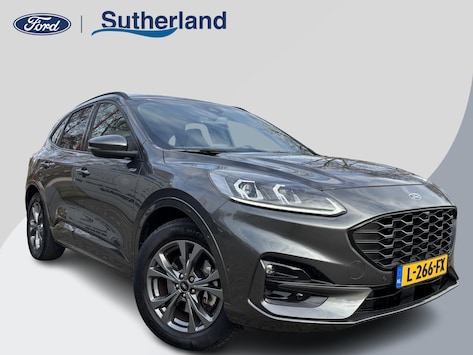 Go Further, een kreet die bij u past? Dan is deze Ford zeker een nadere blik waard! De hybride motor van deze Ford Kuga zorgt dat u opvallend veel minder brandstof verbruikt dankzij de ondersteuning van de elektromotor met z'n eigen accu. En die laadt u al rijdend bij. Slim en zuinig! Zelfs als het buiten ijzig koud is, kunnen zowel de bestuurder als de passagiers op de achterbank snel opwarmen, dankzij de verwarmbare stuurwiel en de achterbankverwarming. Opvallend zijn de stoere sportstoelen, die zorgen voor een onwrikbare zit in de scherpe bochten. Met een druk op de knop gaat de elektrische achterklep open. Bij de rijke uitrusting horen ook 18 inch lichtmetalen velgen, LED koplampen, sportonderstel, geluidsisolerende ramen, in delen neerklapbare achterbank en LED-achterlichten.