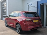 Sportieve en complete Ford Kuga PHEV 225pk Hybrid Automaat ST Line in de kleur Lucid Red van 1e Eigenaar. Inclusief Styling pakket incl. Dakspoiler, Privacy Glass, 18" Lichtmetalen velgen, Compleet Digitaal Dashboord, Leder Alcantara bekleding icm. Verwarmbare Sportstoelen, Voorruitverwarming, Stuurverwarming, In hoogte verstelbare Sportstoelen, Cruise Control, Adaptieve Full LED Koplampen icm. Aut. Grootlicht assistent, Achteruitrijcamera, Parkeersensoren voor & achter, Pre-Collision Assist, Lane Centering aid, Verkeersbordherkenning, Active City stop, Wrong way Alert, Touchscreen Navigatie icm. Bluetooth Voice control & USB, Apple Car Play & Android Auto, Climate control, Elektrisch inklapbare Buitenspiegels, Keyless Entry & Starten op afstand.