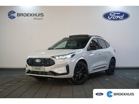 Bij het ontwerpen van de Ford Kuga stonden uw comfort en uw veiligheid centraal. Deze nieuwe auto is nu uit voorraad leverbaar. Een hybride auto zoals deze, wordt aangedreven door een verbrandingsmotor en een elektromotor. Daardoor is de auto zuinig en vriendelijk voor het milieu. Van een cabrio heeft u alleen 's zomers plezier. Maar het elektrisch bediende glazen panorama dak van deze auto betekent het hele jaar genieten. Net zoals u elke dag het gemak ervaart van de elektrisch bedienbare achterklep. Neem plaats op de comfortabele stoelen. Dankzij de elektrische bediening en het geheugen is het eenvoudig om hierin de beste zitpositie te vinden. In dit voertuig hoeft u nooit meer kou te lijden dankzij functies als stoelverwarming en verwarmbare achterbank, evenals een verwarmbaar stuur. De koplampen zijn voorzien van de allernieuwste lichttechnologie: matrix LED-verlichting. U wordt in deze auto ook getrakteerd op 20 inch lichtmetalen velgen, sportonderstel, geluidsisolerende ramen, in delen neerklapbare achterbank, LED-achterlichten en sportuitlaat. Pas de interface van uw cockpit moeiteloos aan. Het is mogelijk door het digitale dashboard in deze auto. De vier camera's die samen de 360 graden camera vormen, bieden u de mogelijkheid om obstakels in elke richting te zien. Adaptive cruise control is een comfortabele en veilige optie. Het systeem reguleert de snelheid en houdt automatisch afstand tot uw voorligger. Pech oplossen en zelfs voorkomen? Gaat eenvoudig. Via Connected Services heeft u alle data in de hand, gewoon op de smartphone! Het high performance audiosysteem produceert krachtige bassen en heldere hoge tonen. U bent in deze Ford ook voorzien van dashboard met spraakbediening, full map navigatiesysteem, kruisend verkeer detectie, automatische airconditioning, draadloos opladen en DAB ontvangst. De nieuwste veiligheidssystemen komen in deze Ford Kuga samen. Onderweg fungeert de verkeersbord-detectie als het ware als uw bijrijder en attendeert u op de verkeersborden langs de weg. Keep your lane? Het Lane-keeping systeem zorgt er automatisch voor. De forward collision warning geeft een botswaarschuwing als een aanrijding dreigt met een voorligger. De auto is ook uitgerust met dodehoekdetectie, hill hold functie, vermoeidheidsherkenning, frontale botsbescherming en bandenspanningcontrolesysteem. Wij leveren deze nieuwe auto met volledige fabrieksgarantie. Maak nu snel een afspraak om deze auto te bekijken.