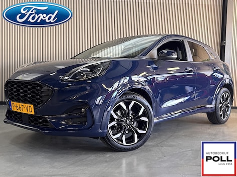 Luxe en Sportieve PUMA 125pk EcoBoost Hybrid ST-Line X met pas 35.000km en voorzien van Full Body Styling pakket icm. Sportonderstel, 18" Lichtmetalen velgen, Privacy Glass, Half Lederen bekleding icm. in hoogte verstelbare Sportstoelen, Volledig Digitaal Dashboard, Touchscreen Navigatie, Achteruitrijcamera, LED Koplampen icm. Grootlicht-Assistent, Climat control, Cruise control, Pre-Collision Assist, Lane Keeping Aid, Verkeersbordherkenning, Wrong Way Alert, B&O Premium DAB+ Audio icm. Subwoofer, Parkeersensoren, Draadloos opladen, Bluetooth & Voice control & USB, Apple Car Play & Android Auto, Elektrisch inklapbare Buitenspiegels, Adaptieve LED Mistlampen en Zichtpakket.