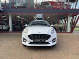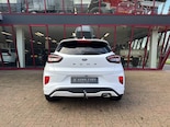 Een als nieuwe Ford Puma in de sportieve en meest luxe ST Line X uitvoering. Uitgevoerd in de mooie kleurcombinatie van Frozen White met zwarte accenten en een lederen/stoffen sportinterieur met aluminium, carbon en rode accenten en een zwarte hemelbekleding.
