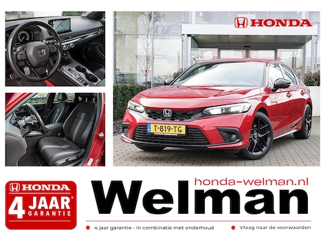 Fantastisch mooie Civic 2.0i e:HEV SPOR Full HybridT!!! Rechtstreeks van 1e eigenaar, nieuw door ons geleverd en 100% Honda dealer onderhouden (aan ons bedrijf) Deze pracht Civic inclusief: Michelin Cross Climates All Weather banden, instaplijsten en chroom kofferdeksel sierlijst, half Lederen/stof interieur, Honda Connect, Garmin Navigatie, Parkeersensoren voor en achter, Adaptieve Cruise control, Wireless telefoon Charger, Automatische airconditioning twee zones, Rijstrookassistentie, 18" Inch zwarte velgen, Bluetooth carkit, Dual-Zone Climate control, Achteruitrijcamera met parkeerhulp, Actief stadnoodremsysteem, LED dag -rijverlichting, Elektrisch Lendensteun voor bestuurder, Blind Spot Information, Achteruitrijcamera, Grootlichtondersteuning, E-Call, Premium / hifi installatie met 8 luidsprekers, Smart Entry & Start, Verwarmbare voorstoelen, Sportpedalen, Zwarte Hemelbekleding, Privacy Glass, Verkeersbordenherkenning, Stoelverwarming voor, Alarmsysteem, Automatische ruitenwissers, Automatische verlichting met High Beam Support, Dode hoek waarschuwingssysteem en Car Play voor Android of Apple. Wij leveren onder vaste en uiterst scherpe prijscondities, Deze Civic Sport e:HEV wordt met resterende fabrieksgarantie geleverd. Uniek; informeer ook naar de mogelijkheden van Honda&Selectie, waarbij u zorgeloos geniet van 48 maanden volledige Honda garantie, gratis haal en brengservice bij onderhoud en/of reparatie en 48 maanden gratis Honda Assistance.