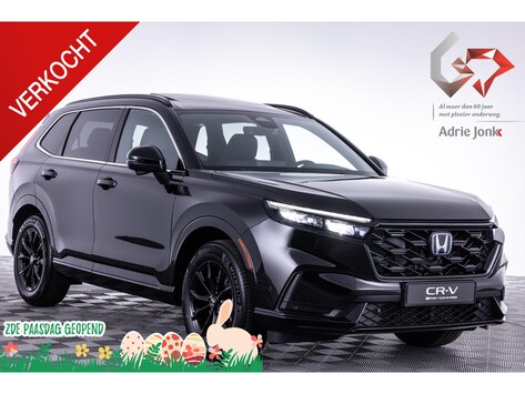 U rijdt gemakkelijk, comfortabel en zonder zorgen met deze Honda CR-V. Dit is een nieuwe auto, hij is nu direct leverbaar. De hybride motor van deze Honda CR-V is de ideale combi van zowel brandstof- als elektromotor. Minder vaak naar de pomp, maar ook zuinig en schoon door de stad! U wilt comfort? Die is er, met het lederen interieur. U wilt gemak? Kijk dan even naar de elektrisch bedienbare achterklep. U past de stoelen moeiteloos aan, ze zijn elektrisch in te stellen en hebben bovendien een geheugen. Rijcomfort wordt naar een hoger niveau getild in deze auto, met inbegrip van stoelverwarming, een verwarmbare achterbank en een verwarmbaar stuur. Het glazen panoramadak laat u genieten van een wijds uitzicht en meer lichtinval. Bij de zeer complete uitrusting van deze auto behoren ook 18 inch lichtmetalen velgen, LED-koplampen, adaptief dempingsysteem, dakspoiler, extra getint glas en in delen neerklapbare achterbank.