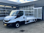 Een zeer nette Iveco Daily 35s14 2.3 136pk Autotransporter Tijhof 514 cm laadbaklengte Airco Cruise controle 3500kg Trekhaak 1145kg Laadvermogen Luchtvering Autoambulance Transporter Euro 6 Oprijwagen 3-Persoons Pick-up Open laadbak Bakwagen P-up