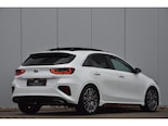 Wat een plaatje, deze bomvolle Kia Ceed 1.6 T-GDI 204 pk Automaat met het sportieve GT pakket. Bij deze auto is werkelijk elke optie aangevinkt. De Ceed is volledig Kia Dealer onderhouden en de onderhoudshistorie is netjes aanwezig. Het GT pakket inclusief fabrieksopties bestaat onder andere uit een elektrisch glazen panoramadak, afneembare trekhaak, stoelverwarming voor en achter, stuurverwarming, navigatiesysteem, achteruitrijcamera, parkeersensoren voor en achter, automatische airconditioning, dodehoeksensor, dab, led, lederen/alcantara bekleding, sportstoelen met geheugenfunctie, digitale cockpit, bestuurdersstoel elektrisch verstelbaar, JBL geluidssysteem, keyless entry en start, app-connect, lichtmetalen velgen, getint glas en de witte metallic lak. Een unieke en prachtig samengestelde Kia Ceed GT!