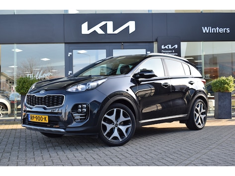 Sportieve Kia Sportage 1.6 T-GDI GT-Line o.a. voorzien van Hoge instap, Automaat, Airco, Cruise Control, Navigatie, Achteruitrijcamera, Bluetooth, Leder, Stoelverwarming, Stuurverwarming, Electrisch verstelbare voorstoelen, Electrisch Panorama Schuif/kantel-dak, Dodehoekherkenning, Privacy glas, Keyless Entry met start/stop-button, 19' Licht metalenvelgen, Parkeersensoren voor + achter, Tot 10Jr. Kia-Garantie. Verkoopprijs € 20.455 ,- incl. Basis Service-pakket. Rijklaarprijs € 21.040 ,- incl. FullService-afleverpakket van € 595,-.