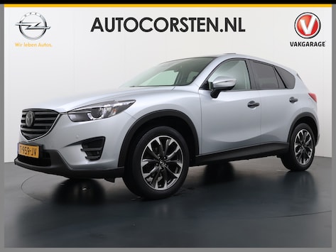 Vijf deuren bieden ruim toegang tot deze riante gezinsauto, deze Mazda CX-5 uit 2016 heeft 110664 kilometer op de teller staan. Een benzinemotor en een automatische transmissie zorgen dat u met deze SUV prima vooruitkomt. Van binnen ziet u een lederen interieur, een stijlvolle uitvoering. Neem plaats op de comfortabele stoelen. Dankzij de elektrische bediening en het geheugen is het eenvoudig om hierin de beste zitpositie te vinden. Overdag een weidse zichthoek en 's avonds het lichtspel in de binnenruimte: dat geeft het glazen panoramadak! Bij de uitrusting van deze Mazda horen onder meer 19 inch lichtmetalen velgen, LED koplampen, donker getint glas achter, LED-achterlichten en verstelbare lendensteunen.