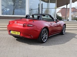 Soul Red Metallic Mazda MX-5 2.0 SkyActiv-G 160 PK in de GT-M uitvoering met zwart volledig leder interieur met rood stiksel, Zwart dashboard met rood stiksel, Stoelverwarming, Apple Carplay / Android Auto, Bose premium sound, Climate control, 17 inch lichtmetalen velgen, Cruise control, Bluetooth met audiostreaming, Lijnassistentie, Dodehoek assistentie, Navigatie, Bluetooth met audiostreaming, DAB+ digitale radio, Leder stuurwiel multifunctioneel.