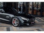 This Mercedes-AMG GT S is in perfect condition and has only 36,500 kilometers on the odometer. It features a panoramic roof, Burmester sound system, adaptive cruise control (Distronic), keyless entry, and is finished in the rare Magnetite Black Metallic (dark gray).