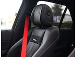 Het exterieur is uitgevoerd in Grafietgrijs, een kleur die prachtig contrasteerd met de hoogglans zwarte accenten van het AMG Night pakket. De 22” zwarte AMG velgen met daarachter rode remklauwen versterken zijn sportieve uitstraling.