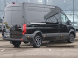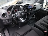 De Sprinter is o.a. voorzien van airco, standverwarming, geveerde bestuurdersstoel, 10,25" MBUX multimediasysteem, achteruitrijcamera, 17" lichtmetalen velgen, volledige laadruimte betimmering en Distronic cruise control (houdt zelf afstand).