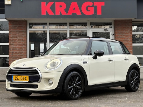 Zeer complete Mini Cooper 1.5 5drs AUTOMAAT, voorzien van een schuifkanteldak, head-up display, achteruitrijcamera, contrasterende dakkleur, parkeersensoren rondom, onderhoudshistorie aanwezig, navigatie, 17" zwarte lichtmetalen velgen, etc. etc.