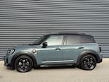 Schitterende Mini Countryman 2.0 Cooper SE ALL4 Plug in Hybrid in Sage Green metallic met hoogglans zwarte licht metalen velgen. Deze Mini is bijzonder uitgerust met onder andere de volgende opties: Stoelverwarming, lederen sport-comfort stoelen elektrisch bedienbaar met memory, Apple Carplay, achteruitrijcamera, navigatie, virtuele cockpit, adaptieve cruise control, keyless entry, parkeersensoren, LED sfeer interieur verlichting, draadloze telefoonlader, etc..