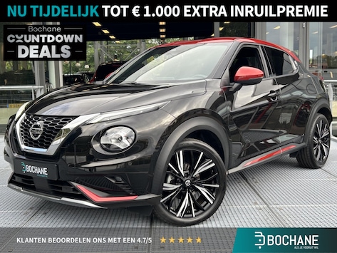 Pragmatisch en veilig als deze auto is, beschikt hij over diverse veiligheidssystemen. De actuele snelheidslimiet, een inhaalverbod en andere verkeersborden; de verkeersborddetectie ondersteunt u tijdens elke rit. Deze Nissan Juke is ook behulpzaam als het gaat om een rechte koers. Het Lane-keeping systeem signaleert en corrigeert als u onbedoeld de rijstrooklijnen dreigt te overschrijden. De sensor van het forward collision warning-systeem registreert permanent de afstand tot voorliggers en grijpt in als een botsing dreigt. In deze Nissan vinden we verder een hill hold functie, brake assist en bandenspanningcontrolesysteem.