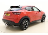 De achteruitrijcamera vergemakkelijkt achteruit inparkeren. U ziet duidelijk wat er achter de auto gebeurt. Spraaksturing is onderdeel van de uitrusting van deze auto. Met uw stem kunt u de belangrijkste voertuigfuncties bedienen. Ingericht op Connected Services, voor een nog veiligere en comfortabelere rit. Deze Nissan Juke is voorzien van sensoren aan de achterzijde om een achteropkomend verkeer waarschuwing te geven als de afstand tussen u en een achterligger te klein is. Het spreekt voor zich dat een auto als deze ook van automatische airconditioning is voorzien. Natuurlijk behoren DAB ontvangst, regensensor, cruise control, keyless entry, automatisch dimmende binnenspiegel en lederen stuur ook tot de uitrusting van deze complete auto.