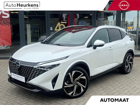Prachtige Nissan Qashqai in de kleur Pearl White i.c.m. een zwart dak en buitenspiegels. Afkomstig van de eerste eigenaar en voorzien van alle mogelijk opties! O.a. uitgerust met automatische airco, climate control (dual-zone), adaptieve cruise control met file-assistent (ProPilot), navigatiesysteem (built-in Google Maps), Apple Carplay en Android Auto (draadloos), rondomzicht parkeercamera met 3D beeld (360 graden), parkeersensoren voor en achter, LED matrix koplampen, panoramadak, elektrisch bedienbare achterklep, elektrisch verstelbare voorstoelen met geheugenfunctie, massagestoelen, Bose Premium audiosysteem, 20 inch lichtmetalen velgen, lederen stoelbekleding, verwarmbare voorstoelen, verwarmbaar stuurwiel, verwarmbare voorruit, head-up display, etc. Inruil en financiering mogelijk!