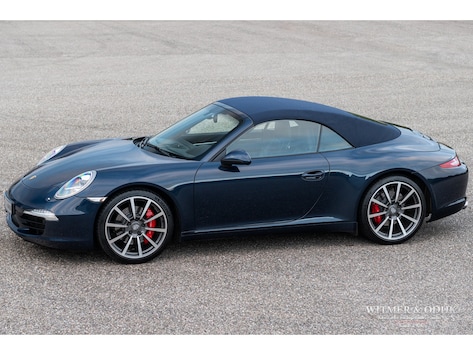 De beste sportauto ter wereld topless rijden is dé ultieme rijbeleving. Gesloten is er geen verschil met de coupe, open prikkelt de auto echt alle zintuigen. Relaxed toeren dankzij de 400pk soepele boxermotor en de automatische PDK versnellingsbak, beweeg de versnellingspook naar manual, schakel handmatig op het stuur, druk ook nog eens op de sportknop en beleef waar een Porsche echt voor is gemaakt. De 911 is nog altijd de beste allround sportwagen ter wereld, praktisch, betrouwbaar, waardevast en dagelijks bruikbaar. Nog nooit wist Porsche haar cabriolet versie van de 911 zo'n mooi strakke, bijna Speedster-achtige, cabrioletkap mee te geven. Gesloten is de daklijn bijna gelijk aan die van de coupe. Laat de foto's spreken. De hier aangeboden auto is uitgevoerd in prachtig Midnight Blu Metallic met een eveneens donkerblauwe cabriokap, is perfect dealer onderhouden en voorzien van alle 'must haves'. Precies zoals u haar wenst, mooi én betrouwbaar. Ja dat bestaat. Zeer compleet met alle opties die een echte stuurman op zijn 911 wil, schakelbare sportuitlaat, Sport Chrono Plus pakket, Porsche Active Suspension Management, automatische climat control, meervoudig electrisch verstelbare stoelen met geheugen, stoelverwarming, stoelkoeling, cruise control, parc distance control voor en achter, blu-tooth telefoonmodule, multifunctioneel Sport Design stuurwiel met schakelpaddles, 20 inch lichtmetalen velgen, Porsche Communication Management met navigatie, Bose luidsprekers met subwoofer, volledig in leer uitgevoerd interieur, elektrisch inklapbaar windscherm, etc. De schadevrije carrosserie van deze Carrera S Cabriolet is blauw in het daglicht, bijna zwart in het donker. Midnight Blue Metallic is de naam van deze schitterende kleur. De bijpassende donkerblauwe cabriokap 'topt' het geheel naadloos af. De strakke kap van de 991 werd ontworpen na uitvoerige windtunnel tests met tevens als doel optisch geen andere lijn in het dak te hebben dan de coupe. De kap is dan ook extreem stil onder alle omstandigheden en is naadloos één geheel, de glazen achterruit ligt er ook mooi verzonken in. Deze 991 heeft zowel op de carrosserie als op de cabriokap geen enkel waarneembaar gebruiksspoor, er is echt geen steenslag of kras op te ontdekken. Het interieur is foutloos, geen zichtbare gebruikssporen binnen in deze cabriolet. Ook de instapzijde van de stoelen is mooi strak en onbeschadigd. Frisse knopjes, nog afleesbaar als ware ze nieuw. Op de vloer originele Porsche matten, echt alles in keurige liefhebbers conditie. Deze Carrera S Cabriolet werd nieuw geleverd door een Nederlandse Porsche dealer. De auto is daar ook altijd aantoonbaar onderhouden. Keurig afgestempeld serviceboekje aanwezig. De complete boordmap met alle instructieboekjes alsmede de reservesleutel is eveneens bij de auto aanwezig. Ook deze Porsche leveren wij inclusief nieuwe APK, garantie en onderhoudsbeurt.