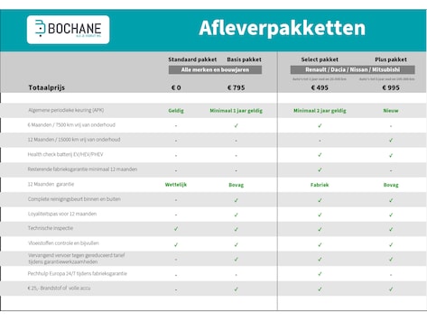 Dit afleverpakket bevat: Wettelijke garantie (12 maanden garantie); 12 Maanden Wettelijke garantie, Geldige APK, Technische inspectie, Tenaamstelling van het voertuig, Vloeistoffen controle en bijvullen