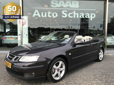 Saab 9-3 Cabriolet 1.8t Vector in de schitterende kleur Espresso Black metallic. Voorzien van onder andere 17 inch lichtmetalen velgen (ALU45), volledig lederen bekleding, park assist achter, lederen stuurwiel, cruise control, climate control, regensensor, verwarmbare voorstoelen, isofix bevestiging op achterbank en chroom afwerking interieur. Prima onderhouden, boekjes ter inzage. Kap is van 2021 en onlangs door ons condensor airco vervangen.
