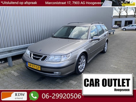 WIJ ZIJN ALLEEN OPEN OP TELEFONISCHE AFSPRAAK. Goed Rijdende Saab 9-5 Estate 2.0t Linear Business Pack met o.a. Automatische Klimaatregeling, Cruise Control, Park Distance Control, Origineel Licht Metaal, Trekhaak en nieuwe APK. Inruil is uiteraard bespreekbaar.