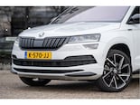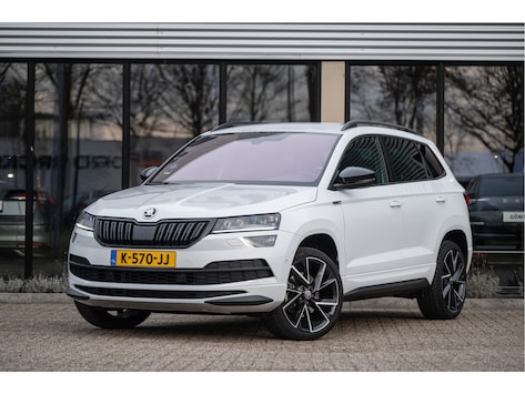 Een zeer compleet uitgeruste Skoda Karoq 1.5 TSI ACT 150pk DSG Sportline in het metallic wit, uitgerust met een semi-elektrisch wegklapbare trekhaak, CANTON Audio, Park Assist, adaptieve cruise control, stoelverwarming, verwarmde stuurwielrand, verwarmde voorruit, 19 inch lichtmetalen velgen, keyless, LED verlichting, elektrische achterklep en nog veel meer!