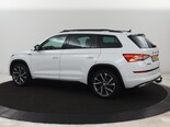 De vormgeving van deze Skoda Kodiaq is stijlvol maar ingetogen en dat maakt meteen duidelijk dat u van deze auto pure kwaliteit mag verwachten. In deze auto vindt u een benzinemotor en een automatische transmissie. De verwarmbare voorstoelen zijn een heerlijke extra optie, waarmee u uzelf en uw bijrijder een groot plezier doet. Opvallend zijn de stoere sportstoelen, die zorgen voor een onwrikbare zit in de scherpe bochten. Dat noemen ze nou een ruimtelijk effect: het elektrisch bediende glazen panoramadak. De bagageruimte is toegankelijk via een comfortverhogende elektrische achterklep. Bij deze Skoda Kodiaq tovert u in één simpele handeling zomaar twee stoelen erbij en heeft u een derde zitrij. Ook is de auto voorzien van: 20 inch lichtmetalen velgen, LED koplampen, dakspoiler, donker getint glas achter, in delen neerklapbare achterbank en LED-achterlichten.