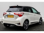 Wie op zoek is naar een zuinige, betrouwbare en opvallend complete hybride Toyota Yaris occasion met Two-Tone lak Wit Metallic / Zwart Dak.