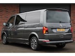 Het exterieur wordt gekenmerkt door moderne LED koplampen en LED achterlichten die niet alleen zorgen voor uitstekend zicht, maar ook bijdragen aan de strakke, eigentijdse uitstraling. Het privacy glas achter versterkt het luxe karakter en biedt extra comfort voor de passagiers. Met schuifdeuren aan zowel de linker- als rechterzijde, beide voorzien van sluithulp, is instappen en laden bijzonder praktisch, zelfs in krappe ruimtes. De aanwezige trekhaak maakt deze Transporter bovendien direct inzetbaar voor aanhanger of trailer.