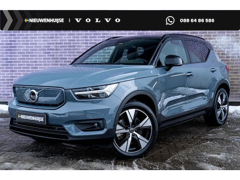Nooit meer tanken. Een laadkabel volstaat om het accupakket van deze Volvo XC40 op te laden. Gas geven is er met de elektromotor niet meer bij. Stil snelheid maken wel! Een weldaad voor u en uw bijrijder: deze Volvo XC40 heeft verwarmbare voorstoelen. Een praktische extra is de elektrisch bedienbare achterklep die opent en sluit met een druk op de knop. Bij deze Volvo XC40 is aan alles gedacht, tot en met een verwarmd stuurwiel aan toe. Ook 19 inch lichtmetalen velgen, LED koplampen, sportonderstel, in delen neerklapbare achterbank, LED-achterlichten en verstelbare lendensteunen horen tot de voorzieningen op deze auto.