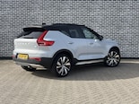 Kijk naar de zelfbewuste vormgeving. Ontdek de vernieuwende technologie aan boord. De Volvo XC40 is een unieke elektrische auto. De techniek van deze auto is radicaal anders dan u gewend bent. U rijdt zacht zoemend naar uw bestemming, de actieradius van de accu's is ruimschoots voldoende voor de meeste dagelijkse ritten. Daglicht valt vrij binnen door het elektrisch bediende glazen panorama dak. Wat ook met één klik opent, is de elektrisch bedienbare achterklep. Neem plaats op de comfortabele stoelen. Dankzij de elektrische bediening en het geheugen is het eenvoudig om hierin de beste zitpositie te vinden. De achterbankverwarming, het verwarmbare stuurwiel en de verwarmbare voorstoelen brengen passagiers en bestuurder snel weer op temperatuur, ongeacht hoe koud het buiten is. Bij de uitrusting van deze Volvo horen onder meer 20 inch lichtmetalen velgen, LED koplampen, sportonderstel, extra getint glas, in delen neerklapbare achterbank en LED-achterlichten.